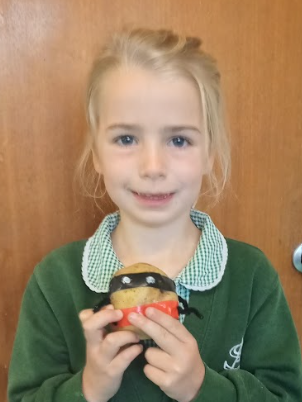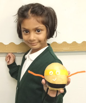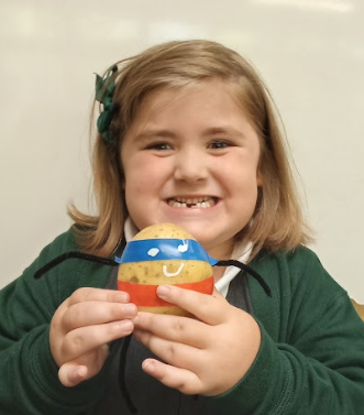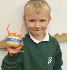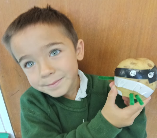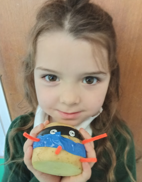We made our own superhero inspired by the Supertato stories and wrote sentences to describe them.
